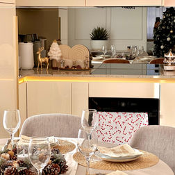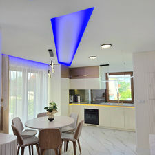 Apartament pomieści komfortowo 8 osób (maksymalnie 9). Charakteryzuje się jasnym, lekkim wystrojem, dużą ilością naturalnego światła oraz klimatycznym oświetleniem LED w chłodnych odcieniach – idealnym na wieczorne chillowanie.